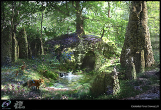 I love how the forest looks realistic (natural) but yet has certain pop to it. Notice they didn't try really hard to make it stand out from a normal forest, just subtle changes make a big difference. So what are the subtle changes? What makes this an enchanted forest? To me the differences are: